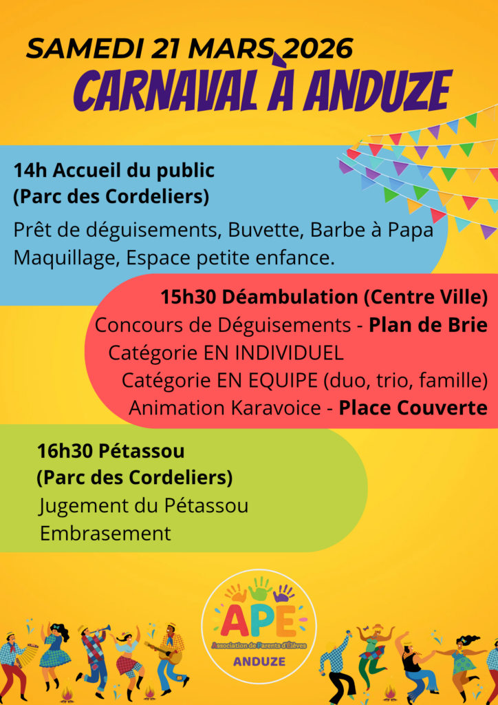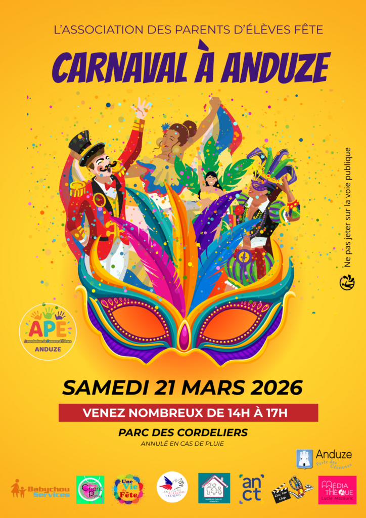 CARNAVAL à Anduze le 21 Mars organisé par l’Association des Parents d’Élèves !