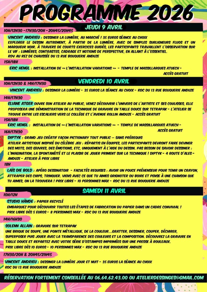 Programme du 9 au 11 avril sur Anduze et exposition le 12 avril au foyer de Massillargues Atuech.