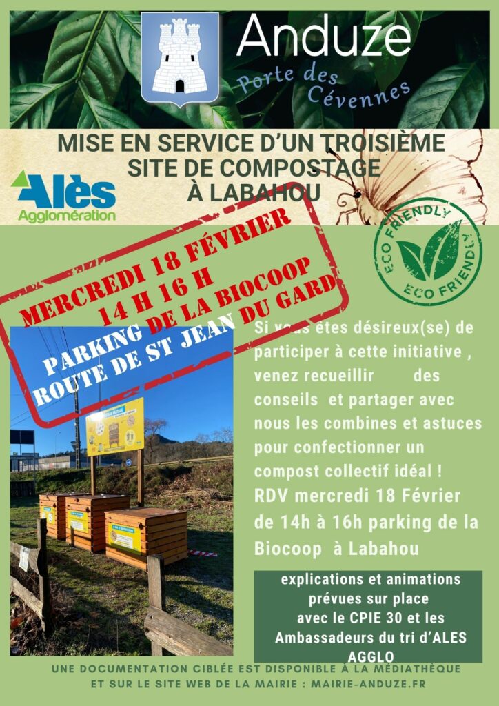 Inauguration d’un 3ème Composteur collectif le mercredi 18 février de 14h à 16h, route de St Jean du Gard, parking de la Biocoop