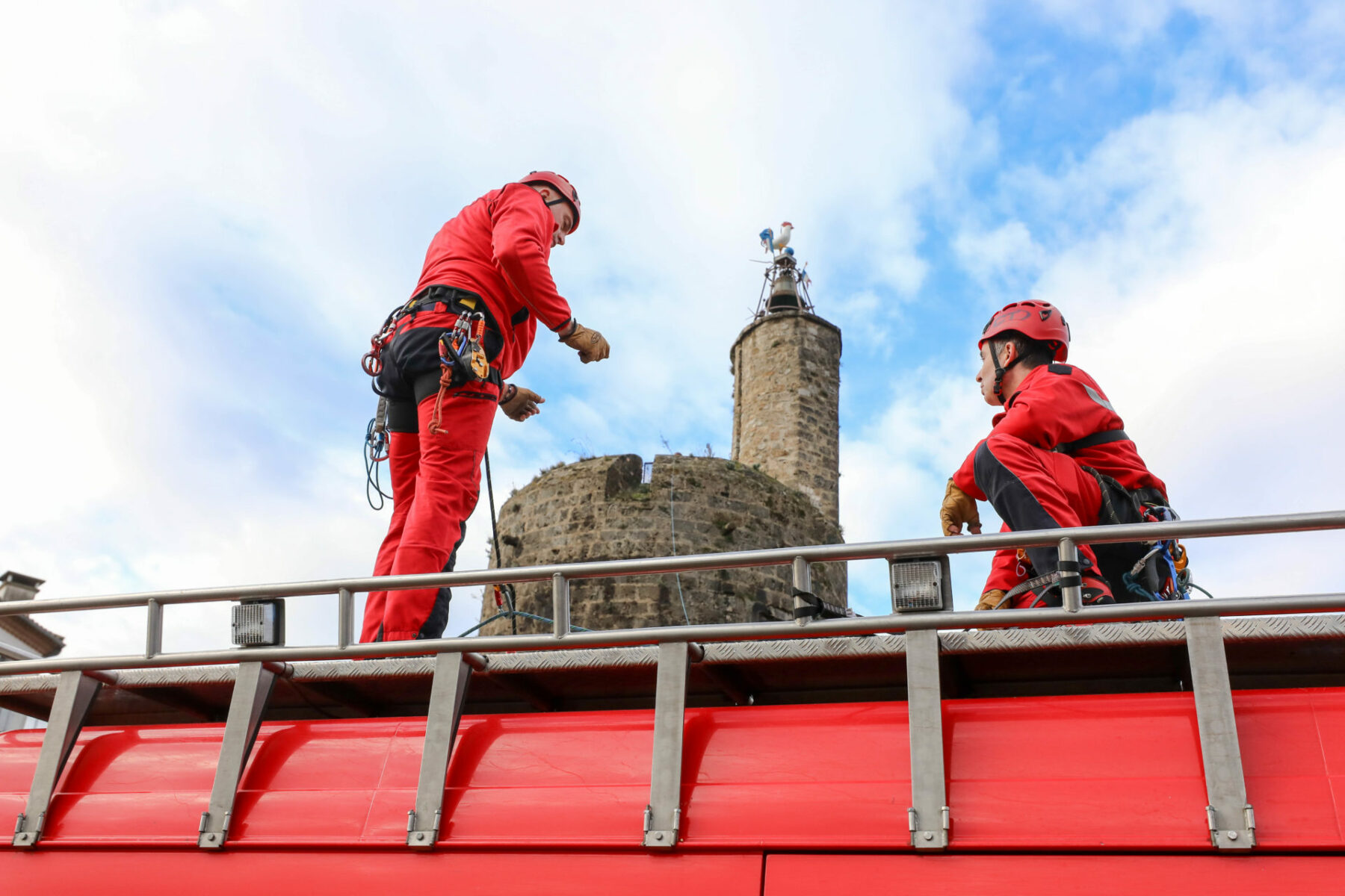 Le vendredi 31 janvier 2020, un groupe de pompiers est venu investir la tour de l’Horloge toute la matinée. Après une visite guidée de l’édifice, il s’agissait pour les hommes du feu d’entreprendre un exercice de sécurité dans ce lieu atypique qui est maintenant ouvert au public ponctuellement.