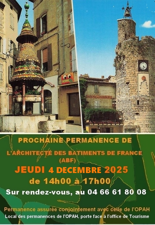 Prochaine Permanence Architecte des Bâtiments de France : JEUDI 4 DÉCEMBRE