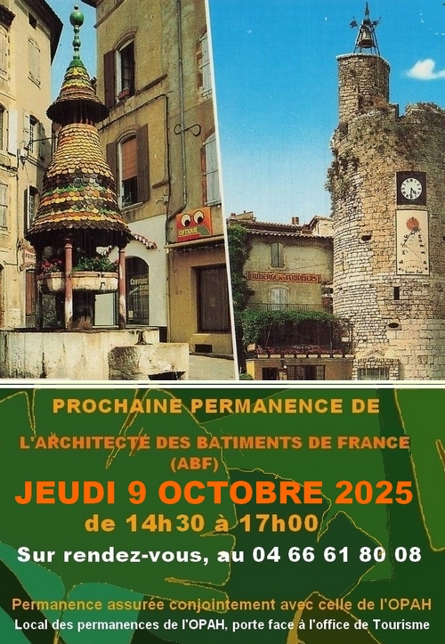 Prochaine Permanence Architecte des Bâtiments de France : JEUDI 9 OCTOBRE 2025