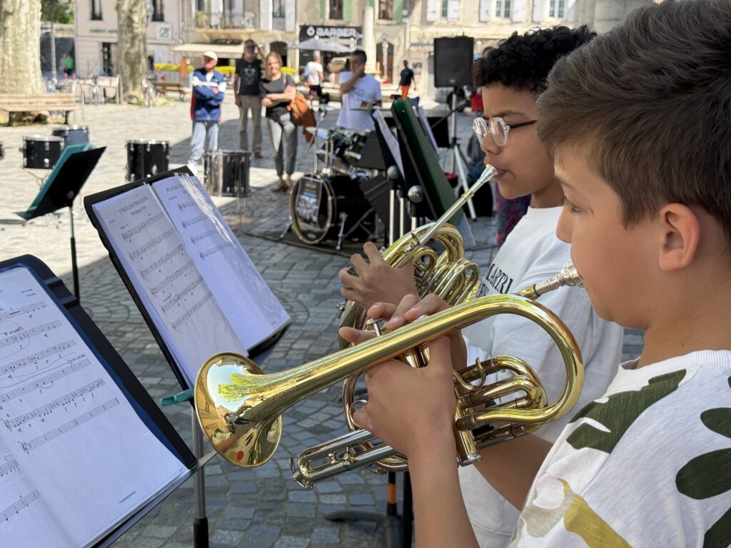 Entre cuivres et rythmes rock, performances d’orchestres ou de solistes, les élèves du conservatoire Maurice André ont mis une joyeuse ambiance devant la mairie ce mercredi après-midi ! Un show frais, vivant et ultra rythmé qui a ravi les spectateurs en nombre sur la place mais aussi sur les terrasses qui entourent le Plan de Brie ! BRAVO à eux !